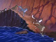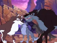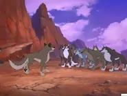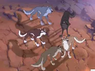 The next morning, the Icebridge had completely formed. When Balto realises that the clan had to choose right then between leaving or staying, the red and white wolf insists that Nava and Balto were right all along and is the first to follow them. When Balto told the clan to partner up, is it likely he chose the dark brown wolf.